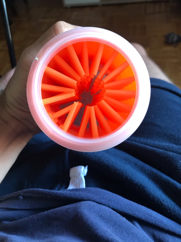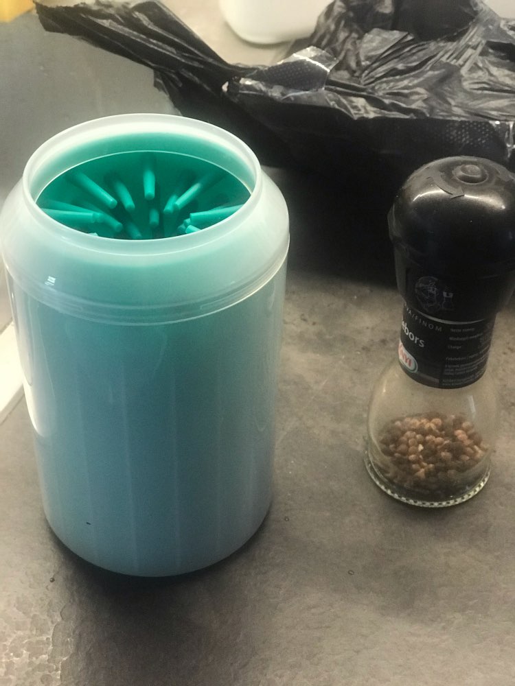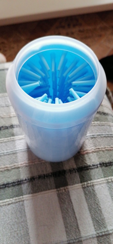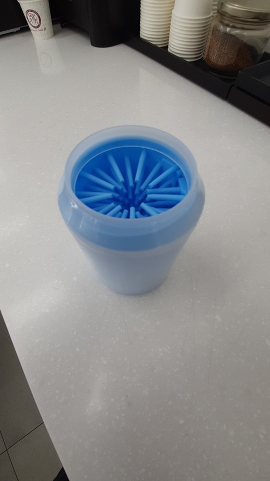 So I’m returning from a short drizzly walk with my pups and noticed the delivery gods paid me a visit. Pretty nice living in a big city close to the post office. It was perfect timing because I just washed my sheets and the boys needed a foot cleaning. I opened the box, took out the tool, and put water in it. 1 minute later, I have my pit bull’s feet all nice and washed. I love it already. It has a wide mouth so that even my pit’s big paws fit with no problem. Both of my dogs didn’t seem to mind it be I will admit that’s it’s a lot easier than just using a wet towel. It really gets a lot off and I can see it being great with soap for those extra dirty moments. Perfect device that does exactly what you need it to do bad for a great price.